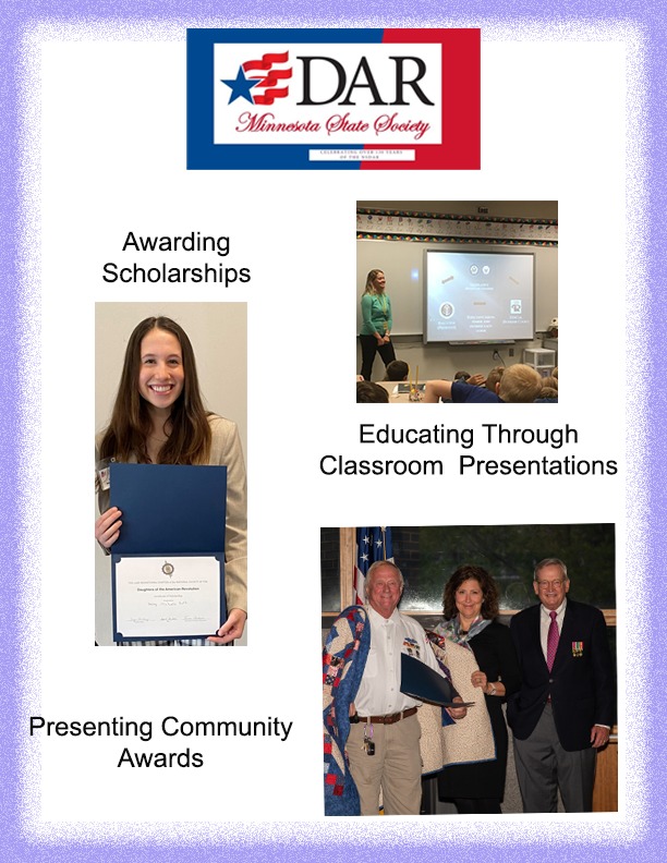 Thank you for visiting our chapter’s website! The members of the Wenonah Chapter, National Society Daughters of the American Revolution (NSDAR or DAR), Winona, Minnesota, are dedicated to the mission of the National Society DAR. DAR is a service organization with the objectives of promoting historic preservation, education and patriotism.